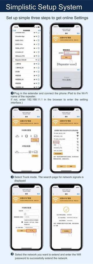enjoy high-speed internet with this dual-band WiFi extender. Ideal for large homes, offices, and travel, it offers 1200Mbps speed, 4 high-gain antennas, and supports Repeater, Router, and Access Point modes. Easy one-touch WPS setup with LED indicators ensures optimal placement. Compatible with all standard routers and features secure encryption protocols.