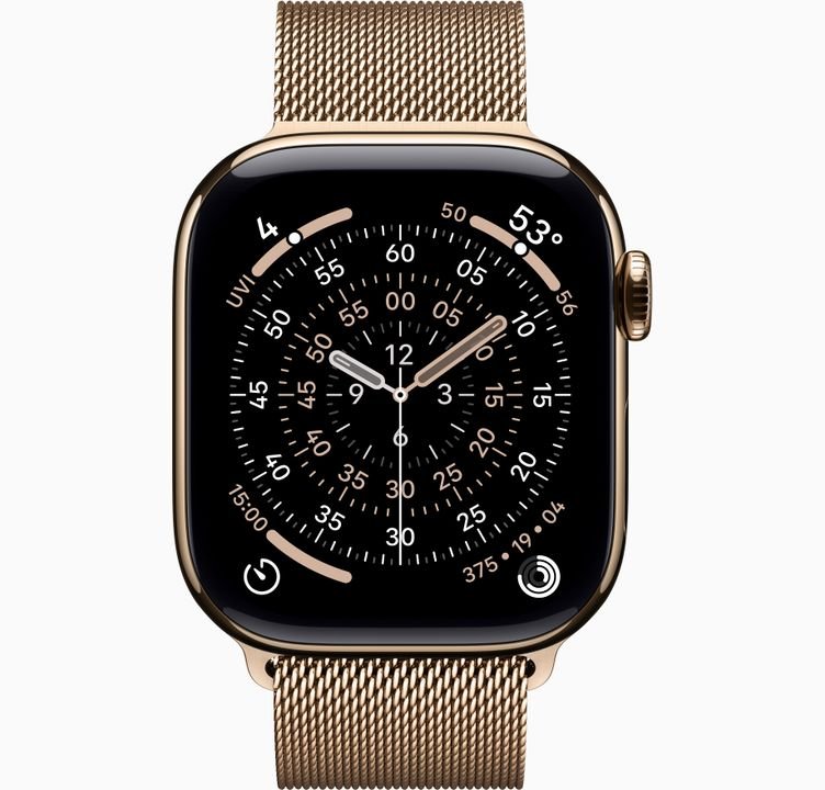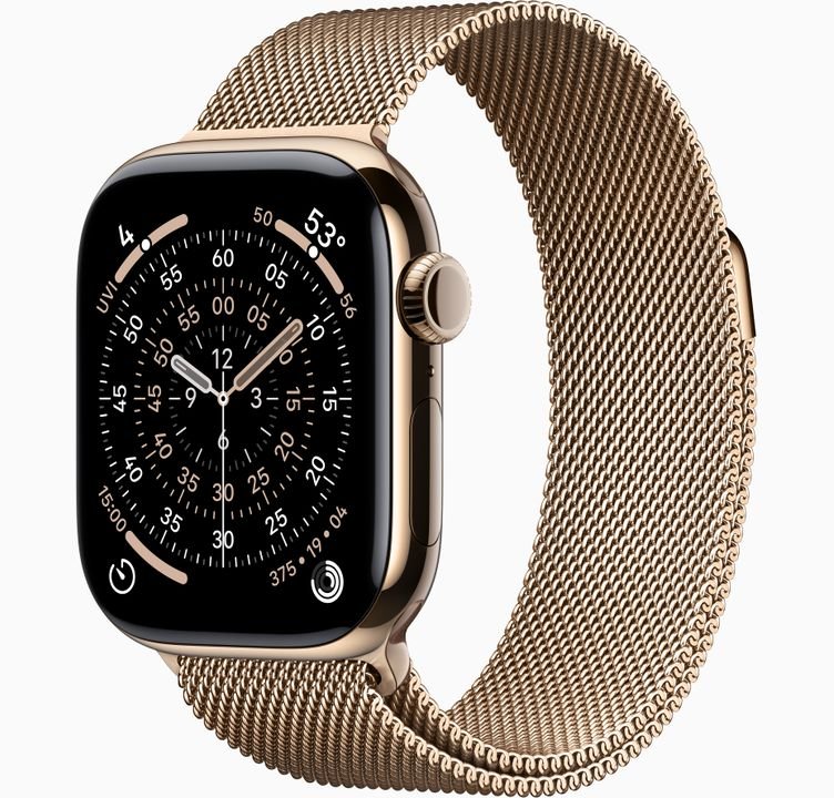 Product: Apple Watch Series 10 GPS + Cellular 42mm Gold Titanium Case with Gold Milanese Loop