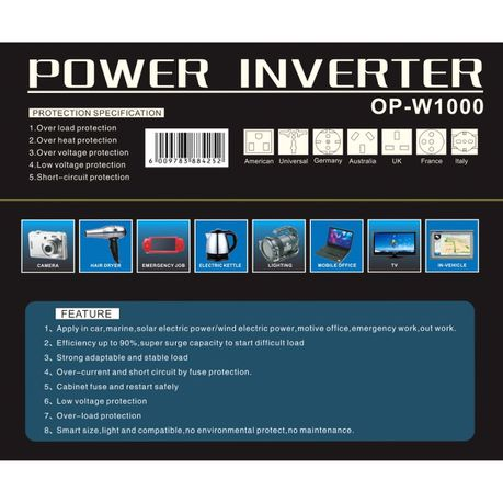 Cost-effective & reliable, the Omega OP-W1000 inverter is perfect for use at home or even within your vehicle. Works will with solar systems or even wind power systems. It is compact and light and requires little to no maintenance.